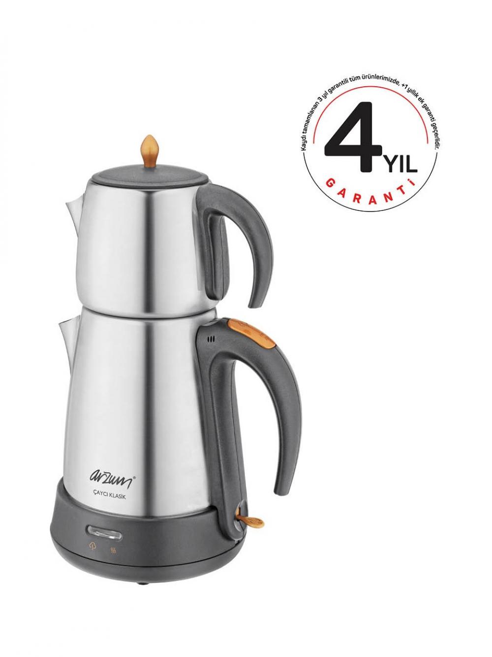 Arzum AR3004-4500 Çaycı Klasik, geniş kapasitesi ve paslanmaz çelik yapısı ile hem dayanıklı hem de pratik bir kullanım sunar. 1,8 litrelik su ısıtıcı haznesi ve 0,7 litrelik paslanmaz çelik demliği sayesinde kalabalık aileler ve misafir ağırlamalar için ideal bir çözümdür.