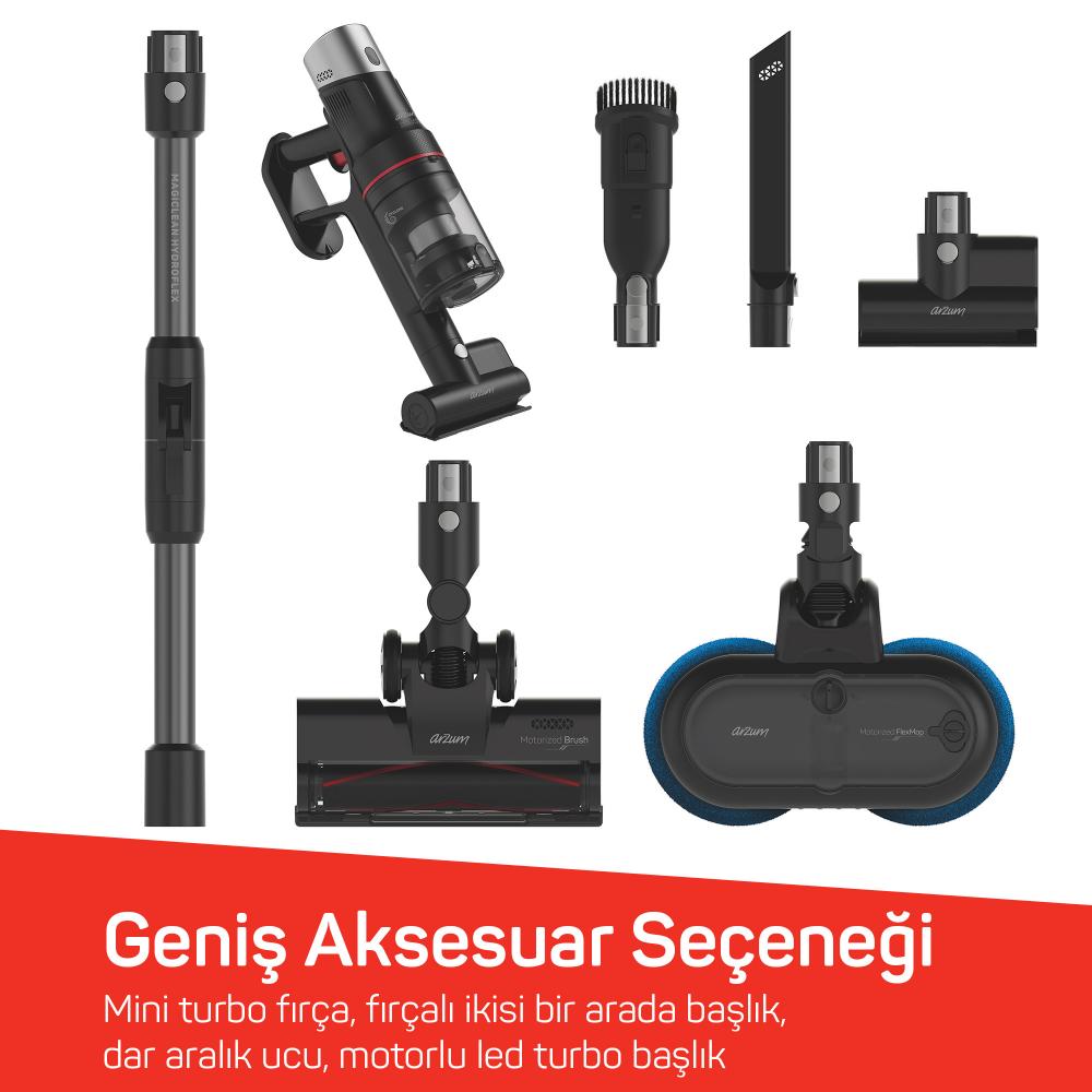 Halı ve sert zeminlerde kirleri daha etkili toplamak için özel tasarlanmış turbo başlık dahildir.