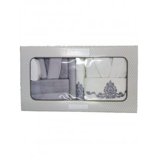 Özdilek Valıoso Bornoz Seti Gri-Krem/Gumus