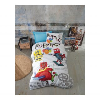 Cotton Box Junior Tek Kişilik Nevresim Takımı Robot Mavi