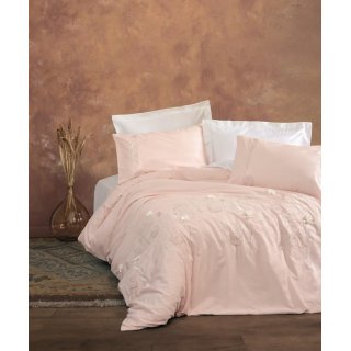 Cotton Box 3D Nakışlı Saten Çift Kişilik Nevresim Takımı Lesley Pudra