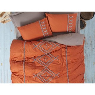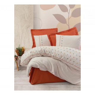 Cotton Box Puf Nakışlı Çift Kişilik Nevresim Takımı Lıya Kiremit-Bej