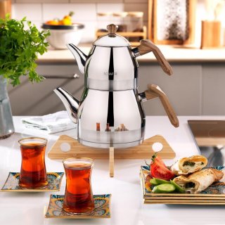 Kappa çaydanlık takımı ergonomik, el yakmayan bakalit sapları ile kullanım kolaylığı sağlarken estetik demliği ile mutfağınızın şıklığını tamamlıyor. İndüksiyon dahil her türlü ocak üzerinde en yüksek ısı transferi sağlayan SOLAR BASE sistemi sayesinde maksimum zaman ve enerji tasarrufu sağlar.