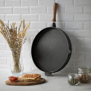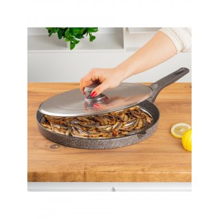 Geri dönüşümlü, tamamen doğal malzemeden, çevre dostu teknoloji ile üretilen Ornella çizilmeye karşı ekstra dirençli volkanit görünümlü PTFE kaplama ve yüksek ısıya dayanıklı silikon dış kaplama ile çok az yağ kullanarak lezzetli yemekler yapar.