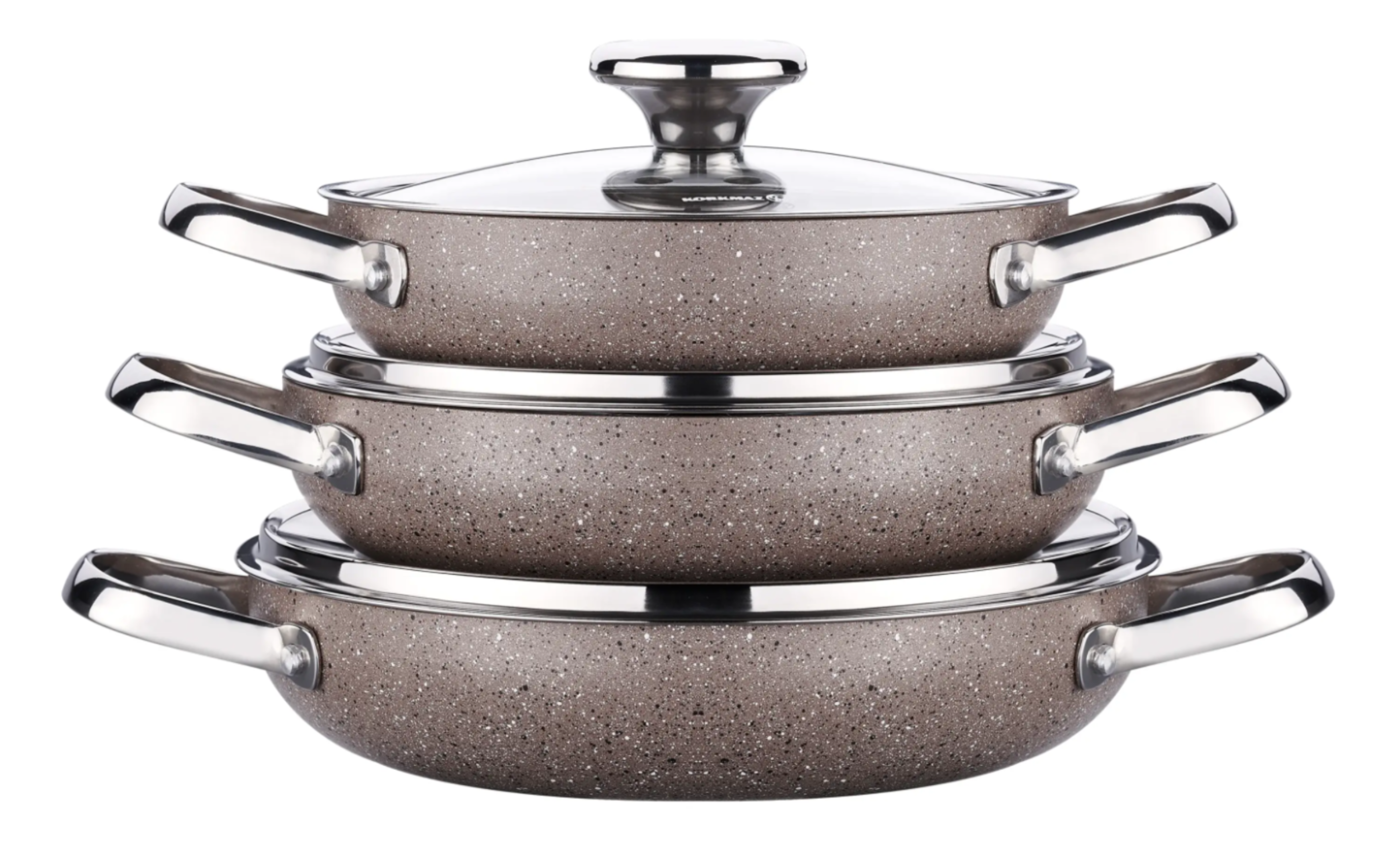 Korkmaz Browni 6 Parça Omlet Set, kahvaltıdan akşam yemeğine kadar her öğün için ideal pişirme seçenekleri sunar. Dayanıklı malzemesi, yapışmaz kaplaması ve farklı boyutlardaki tavalarıyla mutfağınızdaki vazgeçilmeziniz olacak.