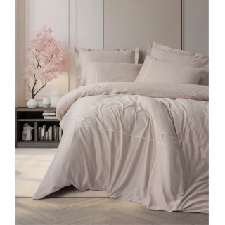 Cottonbox 3D Nakışlı Saten Çift Kişilik Nevresim Takımı Yedda Pudra