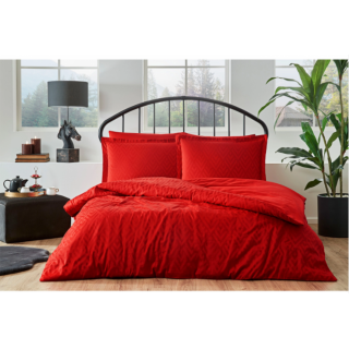 Özdilek Geometrik Jakar Çift Kişilik Saten Nevresim Kırmızı