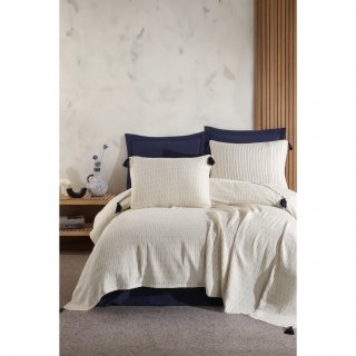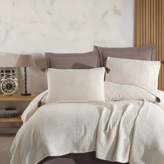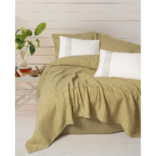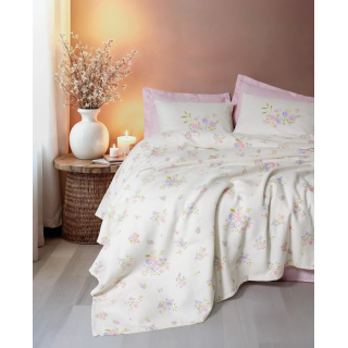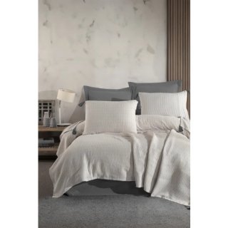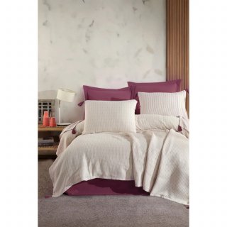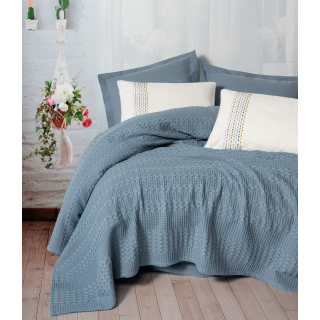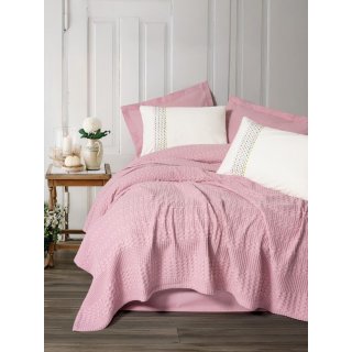 Özdilek Waffle Nakışlı Çift Kişilik Pike Takımı Pembe-Gri