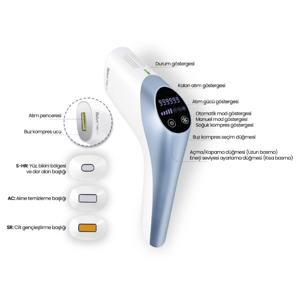Relux IPL9750, güvenli, rahat ve etkili bir epilasyon deneyimi sunarak cildinize profesyonel seviyede bakım yapmanıza olanak tanır.