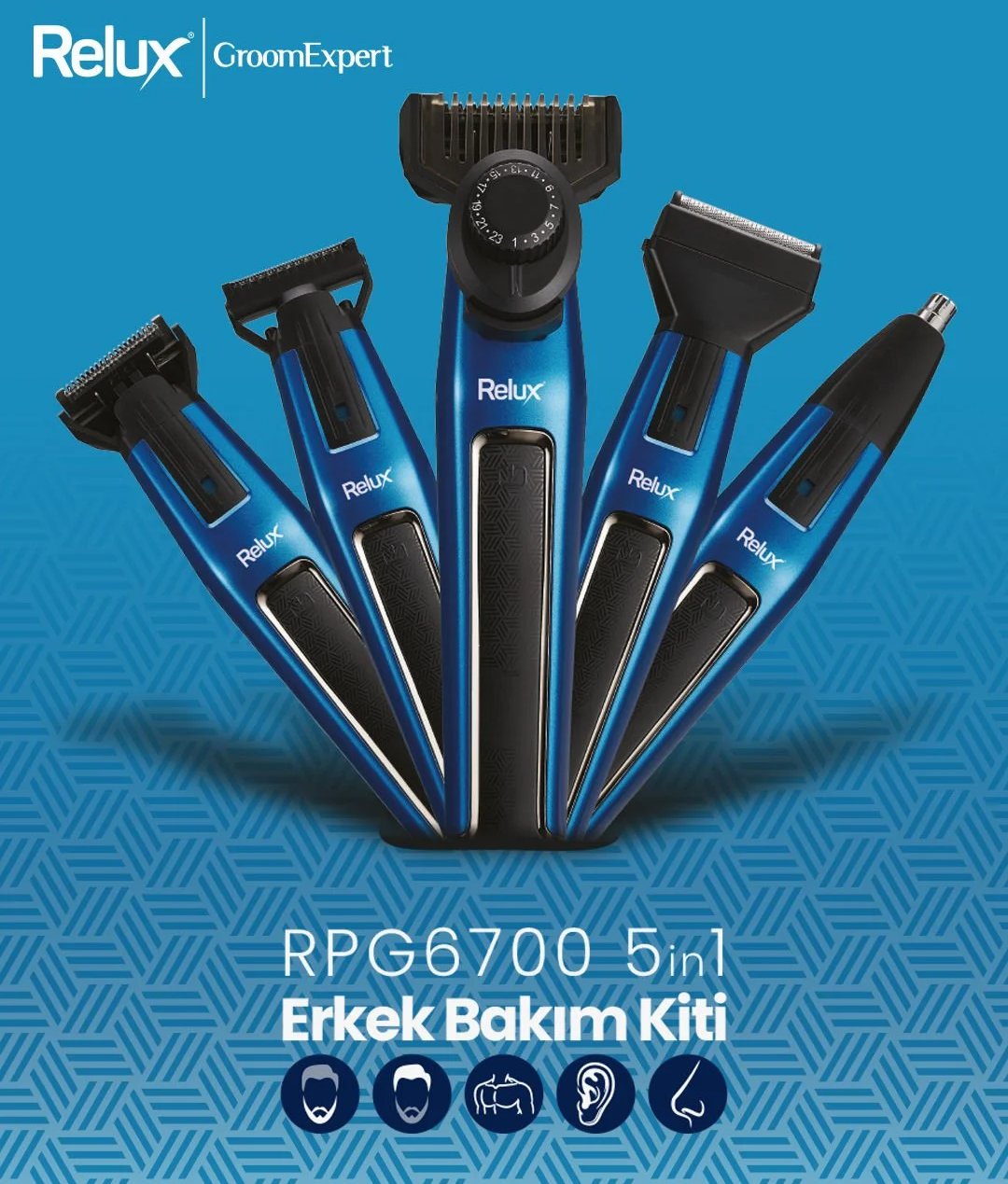 Relux RPG6700, kişisel bakımını tek cihazla pratik, konforlu ve profesyonel şekilde yapmak isteyen erkekler için tasarlanmış 5’i 1 arada çok amaçlı bakım setidir. Hem günlük kullanım hem de detaylı kişisel bakım için ideal bir çözümdür.