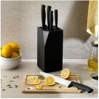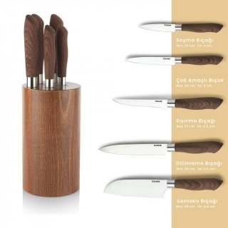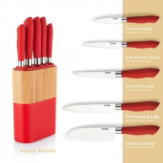Schafer Keen Standlı Bıçak Seti-6 Parça Malzeme: Çelik Ürün İçerik Bilgisi: 1 Adet Şef Bıçağı: 30 cm 1 Adet Sıyırma Bıçağı:27 cm 1 Adet Dilimleme Bıçağı: 29 cm 1 Adet Çok Amaçlı Bıçak: 24 cm 1 Adet Soyma Bıçağı : 20 cm