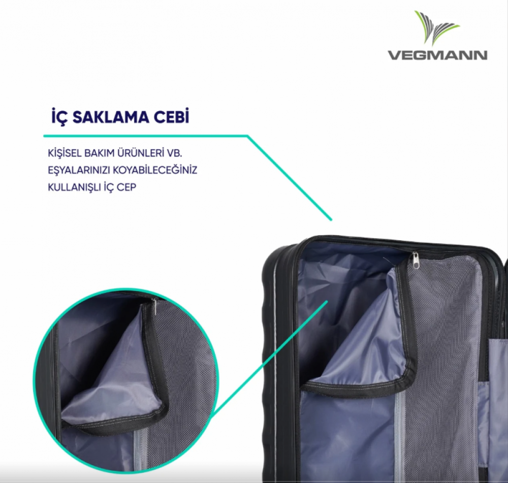Vegmann Delphin Kabin Boy Valiz, kısa seyahatler ve uçak yolculukları için hafif, dayanıklı ve pratik bir kullanım sunar.