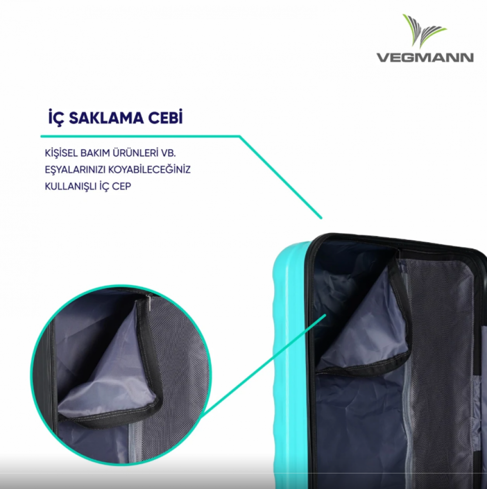 Üst düzey kalite ABS malzemeden üretilen Vegmann Delphin Orta Boy Valiz; hafif, şık ve dayanıklı yapısıyla seyahatlerinizde eşyalarınızı güvenle taşımanızı sağlar. Kırılma ve ezilmelere karşı dirençli gövdesi sayesinde uzun ömürlü kullanım sunar.
