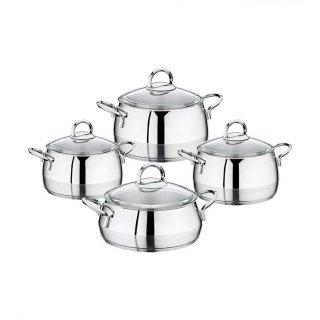 Oms 1006 Küre Zımp 8 Parça Çelik Tencere Seti Gümüş