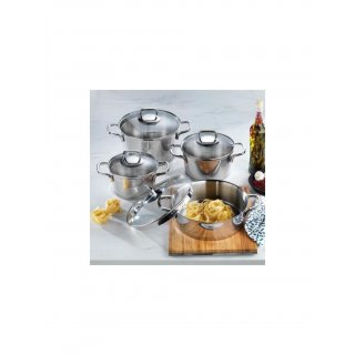 Schafer New Stahl Çelik Tencere Seti-8 Parça-Inox